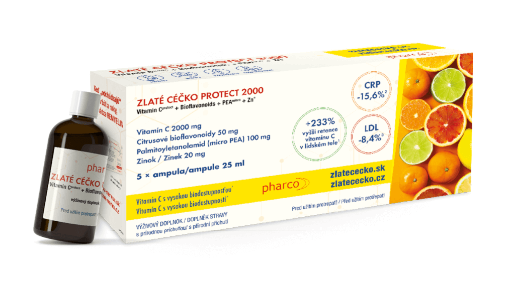 Zlaté Céčko PROTECT 2000 vďaka 90 % biologickej dostupnosti priamo v ľudských imunitný bunkách (lymfocytoch)1zabezpečí, že vaše telo prijme maximum účinných látok. Jednoducho povedané – ide o „infuziu vitamínu C v kapsule“, pripravenú na každodennú podporu imunity.